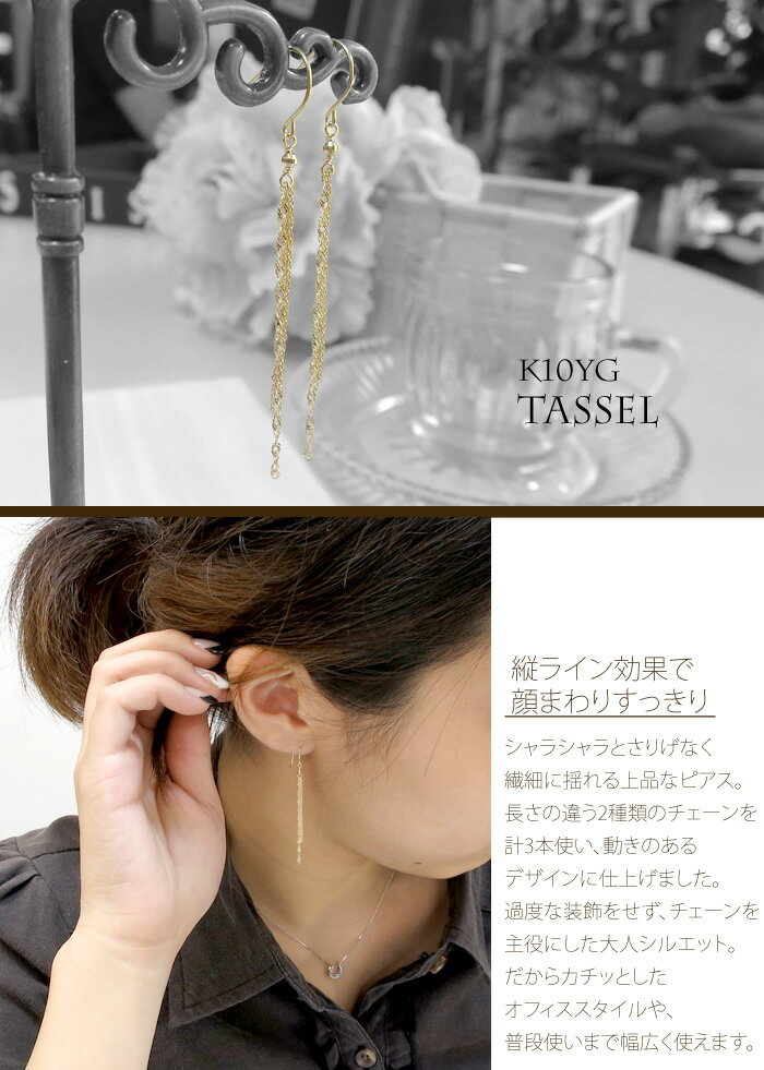 K10 チェーン タッセル フック ピアス 2P あずき 10金 10k k10 イエロー ゴールド シンプル レディース 女性 プレゼント 誕生日 記念日 ギフトBOX ジュエリー レディースピアス 女性用ピアス 人気 彼女 かわいい おしゃれ