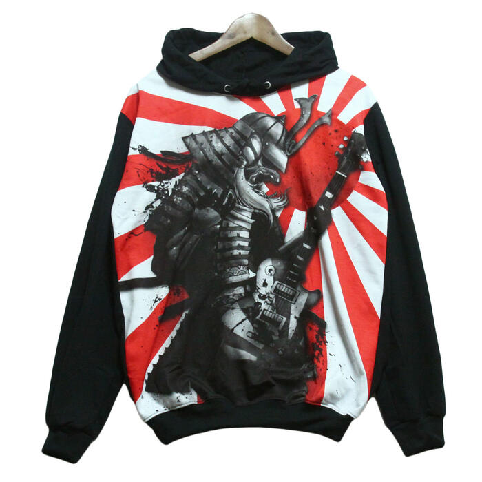 【送料無料】MAO MAO プルオーバーパーカー ブラック メンズ サムライ 侍 ストリート系 フード付き スウェット ギター バンド 戦国武将 クールジャパン デザイン プリント 男女兼用 レディース 仮面 仮装 お洒落 秋冬 長袖 カジュアルコーデの鉄板アイテムのプルオーバーパーカー!! 肌触り抜群のライトなスウェット生地でロングシーズン活躍してくれる大人気のアイテムです。