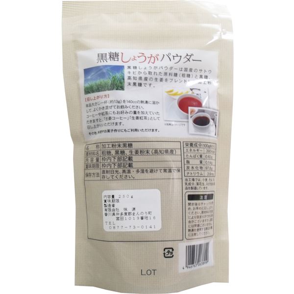 黒糖しょうがパウダー 250g●国産のサトウキビから取れた原料糖(粗糖)と黒糖、高知県産の生姜をブレンドした加工粉末黒糖です。